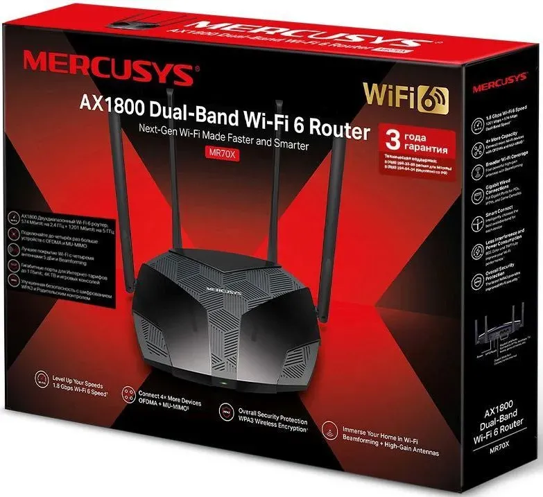 Для снижения нагрузки на сеть Wi?Fi 6 также улучшает её пропускную способность, увеличивая количество подключений в четыре раза благодаря MU?MIMO и OFDMA. MR70X обменивается данными сразу с несколькими устройствами, что улучшает эффективность передачи данных и пропускную способность всей сети.§