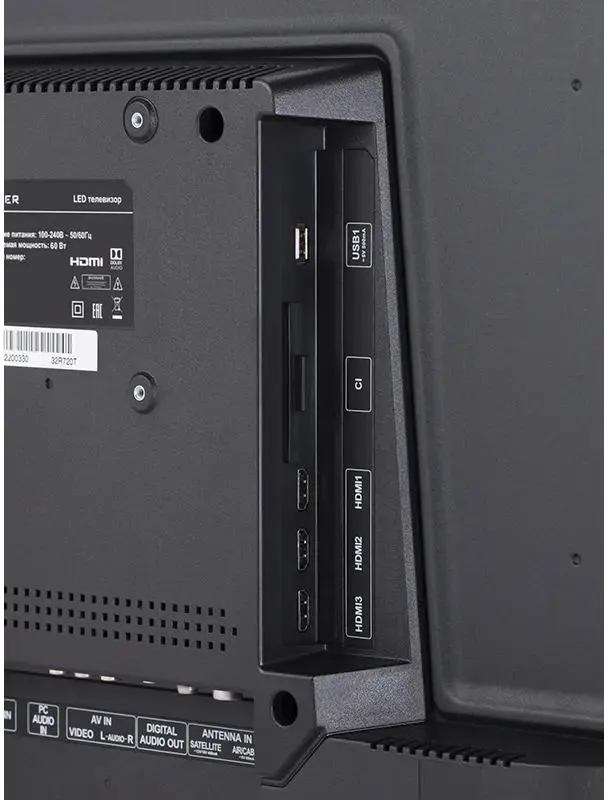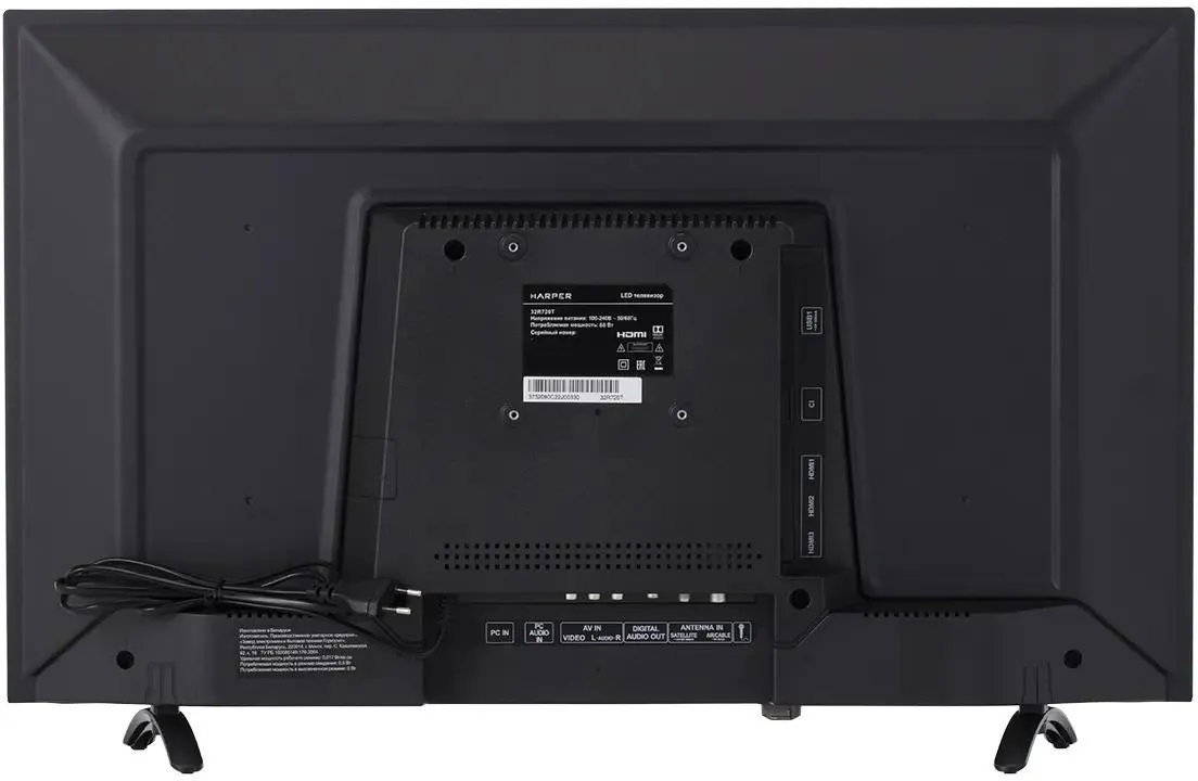Диагональ (дюйм)32 "Тип матрицы экранаVAРазрешение1366x768ПодсветкаDirect LEDФормат изображения16:9Яркость230 кд/м2Контрастность70000Угол обзора178 градусовЧастота обновления60 ГцВремя отклика пикселя8 мс........................................................................................................................................................................................................Телетекстесть................................................................................................................................................................................................................................................................................................................................................................................................................PALестьSECAMестьNTSCестьDVB-TестьDVB-T2естьDVB-Cесть........................................................................................................................................................................................................Объемное звучаниеестьПоддержка стереозвука NICAMестьСуммарная мощность звука12 ВтКоличество динамиков2........................................................................................................................................................................................................AV-входестьВход HDMIестьКоличество входов HDMI2................................................................................................................................................................................................................................................................................................................................................................................................................Количество интерфейсов USB1Выход на наушникиестьПоддержка CIесть........................................................................................................................................................................................................Поддержка MPEG4естьПоддержка MP3естьПоддержка JPEGесть........................................................................................................................................................................................................................................................................................................................................................................................................................................................................................................................................................................................................................Высота473 ммВысота (без подставки)423 ммШирина720 ммШирина (без подставки)720 ммГлубина200 ммГлубина (без подставки)87 ммВес3.5 кг........................................................................................................................................................................................................Максимальная потребляемая мощность48 ВтПроизводительHARPER -