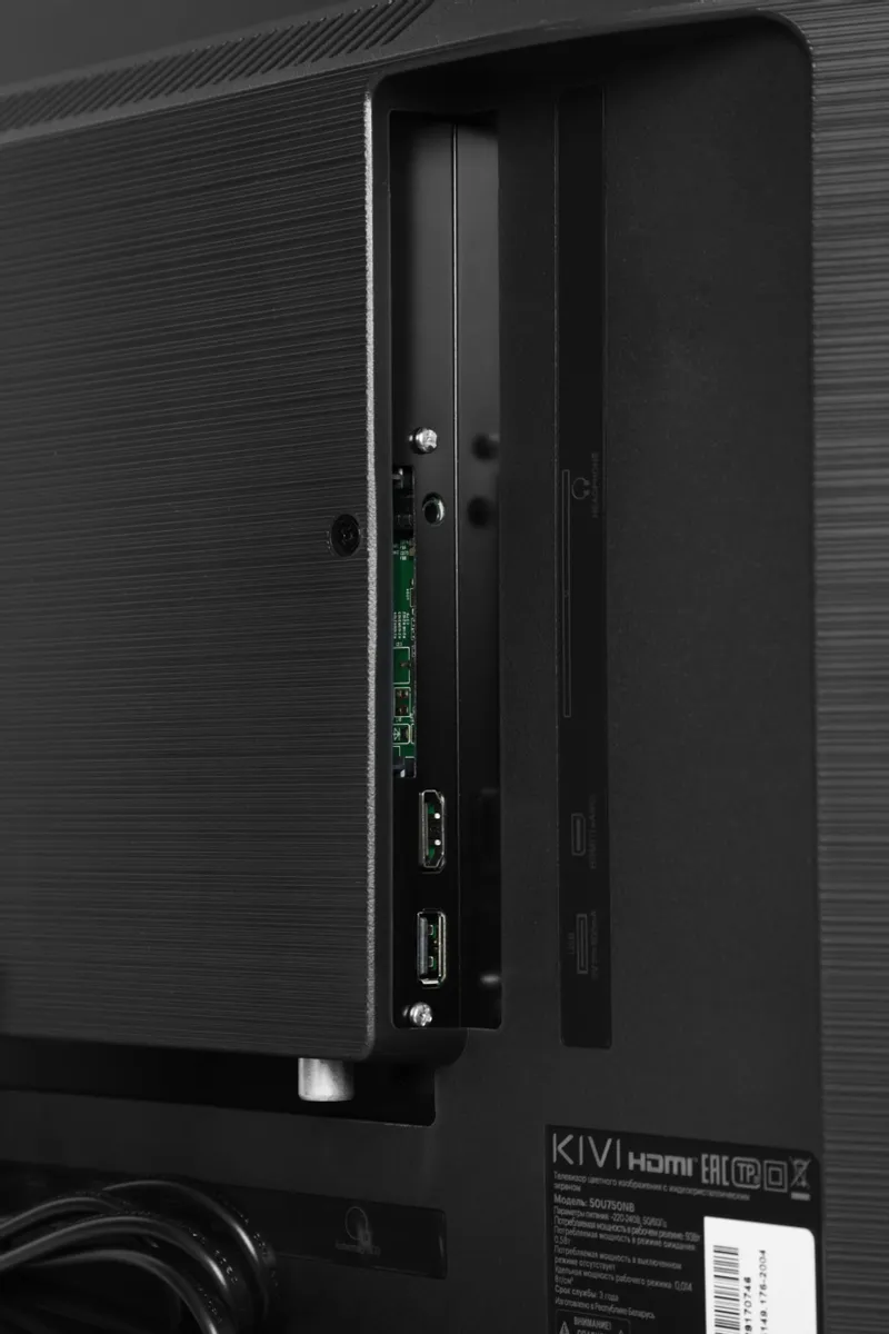 Диагональ (дюйм)50 "Тип матрицы экранаMVAРазрешение3840x2160ПодсветкаDirect LEDФормат изображения16:9Контрастность10000Частота обновления60 ГцВремя отклика пикселя9.5 мс........................................................................................................................................................................................................Операционная системаAndroid TVSmart TVесть................................................................................................................................................................................................................................................................................................................................................................................................................TV-тюнер (аналоговый)естьPALестьSECAMестьNTSCестьDVB-TестьDVB-T2естьDVB-Cесть........................................................................................................................................................................................................Объемное звучаниеестьСуммарная мощность звука24 ВтКоличество динамиков2........................................................................................................................................................................................................Вход HDMIестьКоличество входов HDMI4........................................................................................................................................................................................................AV-выходестьВыход аудио оптическийесть........................................................................................................................................................................................................Количество интерфейсов USB2Интерфейс EthernetестьВыход на наушникиестьПоддержка CI+есть........................................................................................................................................................................................................Поддержка MP3есть........................................................................................................................................................................................................Голосовое управлениеесть........................................................................................................................................................................................................Wi-FiЕстьBluetoothесть........................................................................................................................................................................................................Размер встроенной памяти8.0 Гб........................................................................................................................................................................................................Высота706 ммВысота (без подставки)642 ммШирина1116 ммШирина (без подставки)1116 ммГлубина240 ммГлубина (без подставки)62 ммВес10.5 кг........................................................................................................................................................................................................Максимальная потребляемая мощность93 ВтПроизводительKIVI -