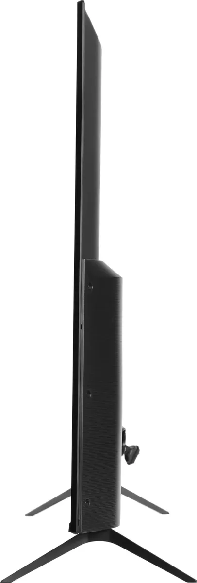 Акустическая система представлена двумя встроенными колонками общей мощностью 24 Вт, которые воспроизводят чистый, качественный, яркий и объемный звук. Телевизор может подключаться к другим устройствам через интерфейсы Wi-Fi, Bluetooth, USB, LAN, HDMI и разъем для наушников. Кадры сменяются плавно благодаря частоте обновления 60 Гц, не утомляя глаза. Модель может управляться голосом, с помощью смартфона или пульта ДУ. За счет тонкого корпуса в современном дизайне прибор сочетается со всеми типами интерьера. В комплекте настольная подставка.