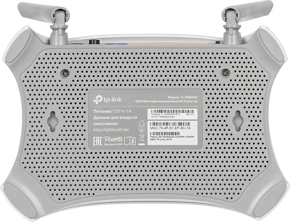 TP-LINK TL-WR842N N300 — маршрутизатор для домашнего использования с поддержкой модемов. Две антенны транслируют стабильный сигнал на большую площадь и покрывают отдаленные места помещения.