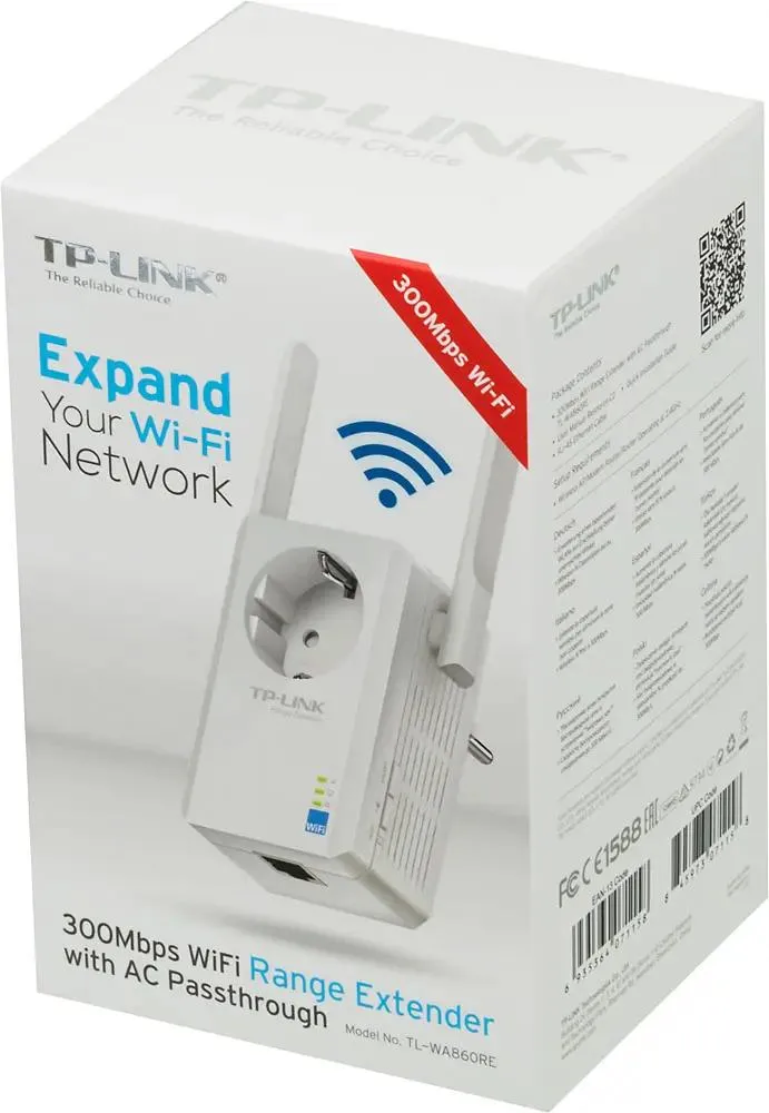 Модель TP-LINK TL-WA860RE имеет один Ethernet порт, при подключении к которому обеспечена скорость 10/100 Мбит/сек. Wi-Fi стандарты 802.11b,g,n позволяют гарантировать беспроводное соединение на максимальной скорости до 300 Мбит/с. А управлять настройками можно через стандартную форму web-интерфейса.