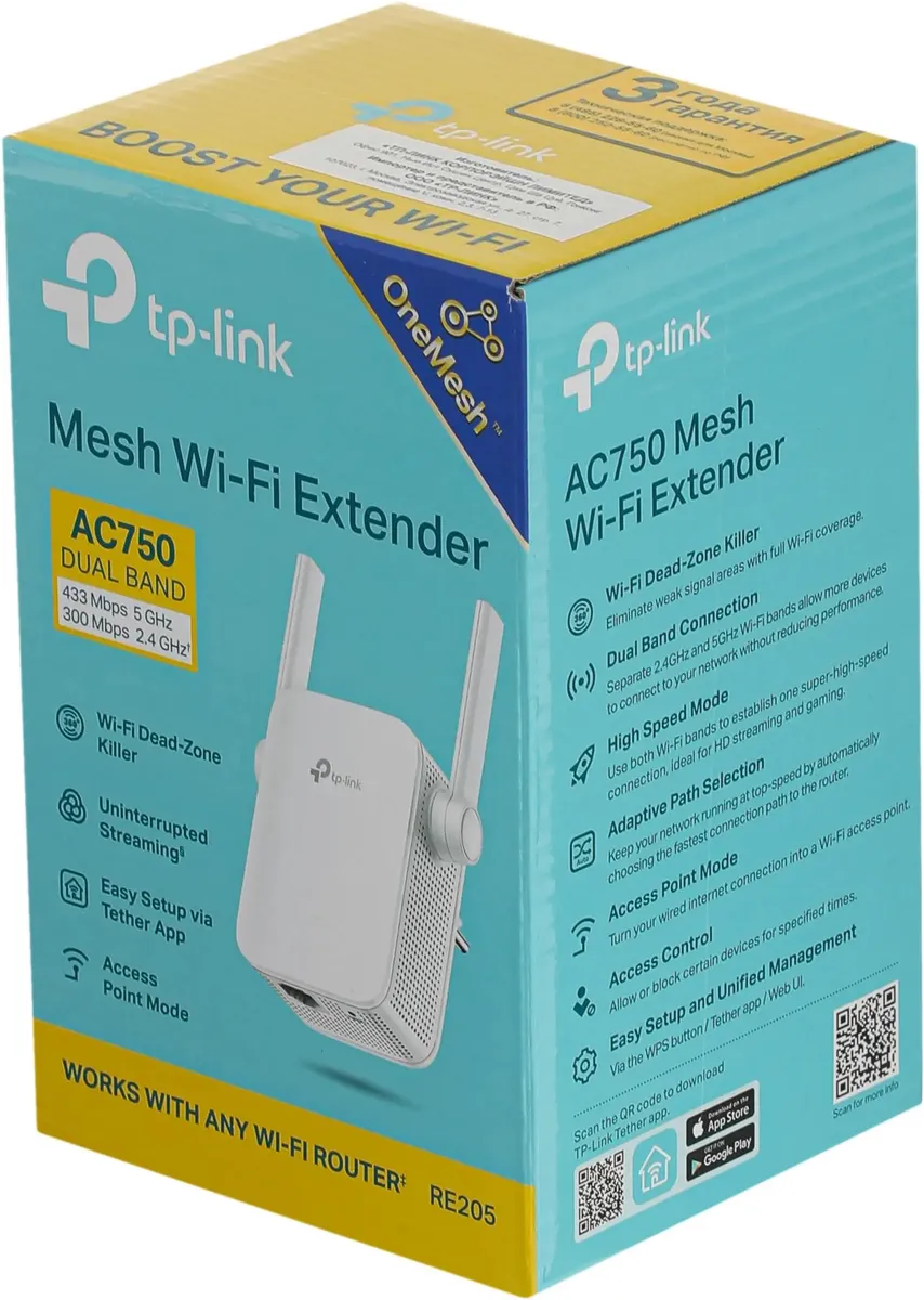 Надежный повторитель беспроводного сигнала TP-LINK RE205 стоит недорого и поэтому популярен как для дома, так и для офисных помещений. Проверенный производитель электроники заслуженно любим во многих странах мира и прекрасно совместим с большей частью модемов и роутеров.