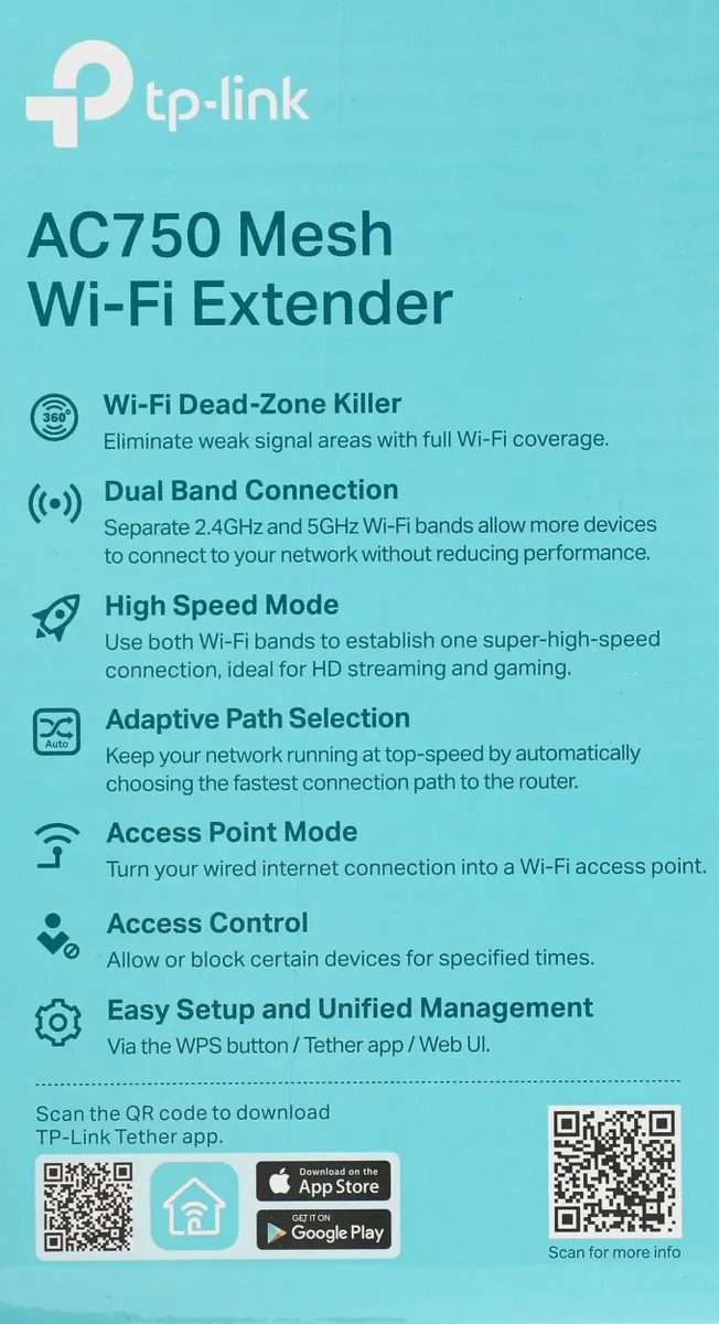 Частотный диапазон устройств Wi-Fi2.4 / 5 ГГцОдновременная работа в двух диапазонахестьМакс. скорость беспроводного соединения733 Мбит/сМетод шифрования данных WEPестьМетод шифрования данных WPAестьМетод шифрования данных WPA2естьWeb-интерфейсестьКоличество внешних антенн2Тип внешней антеннысъемнаяКоэффициент усиления внешней антенны5 dBiМощность передатчика20 dBMШирина77.8 ммВысота80 ммГлубина40 ммПроизводительTP-LINKТип связиWi-FiТип устройстваусилитель сигнала (репитер)Стандарт Wi-Fi802.11a/b/g/n/acКоличество портов коммутатора1Скорость портов100 Мбит/сек -