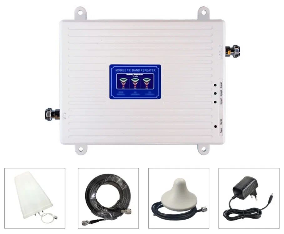 Усилитель 900/1800/2100 MHz (для 2G, 3G, 4G) 70 dBi, кабель 15 м., комплект - сетевое оборудование, которое поможет улучшить качество мобильной связи и интернет соединения стандартов 2G, 3G, 4G. Настенный прибор улучшает сигнал на площади от 200 кв. метров. Поможет вам улучшить интернет на даче. Может использоваться в подвальных помещениях, загородных домах, на дачах, в общественных местах, которые находятся в удалении от вышки оператора. Усилитель интернет сигнала для дачи будет идеальным подарком для дома.