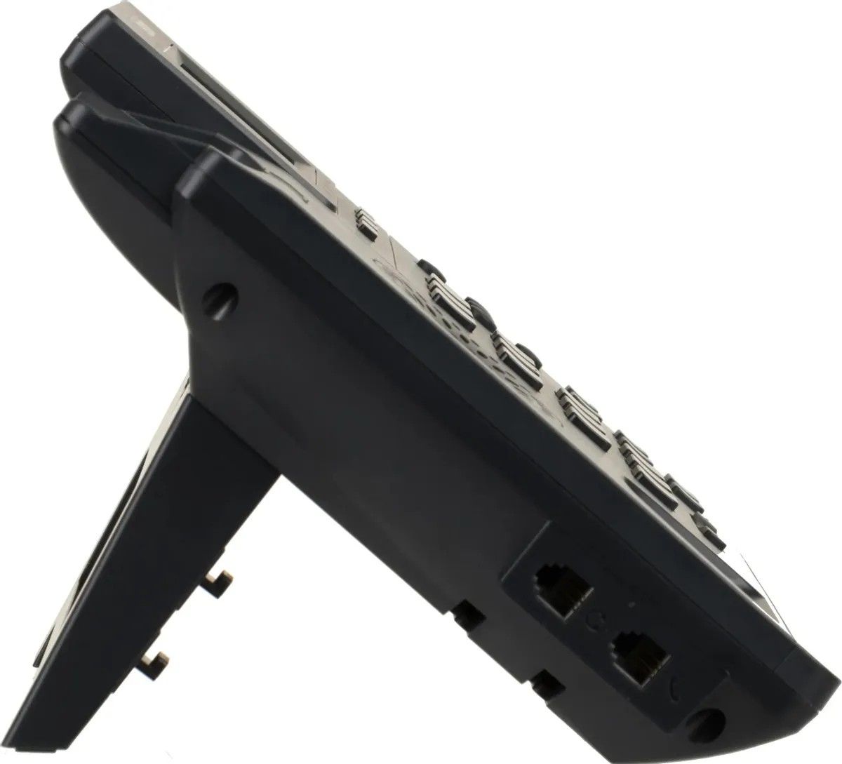 Для подключения внешнего оборудования на корпусе телефона предусмотрено несколько выходов типа RJ-9 и RJ-45 с поддержкой PoE. В качестве источника питания модель также может использовать сеть 220 В. Поставка устройства осуществляется с набором кабелей, подставкой и сетевым адаптером.