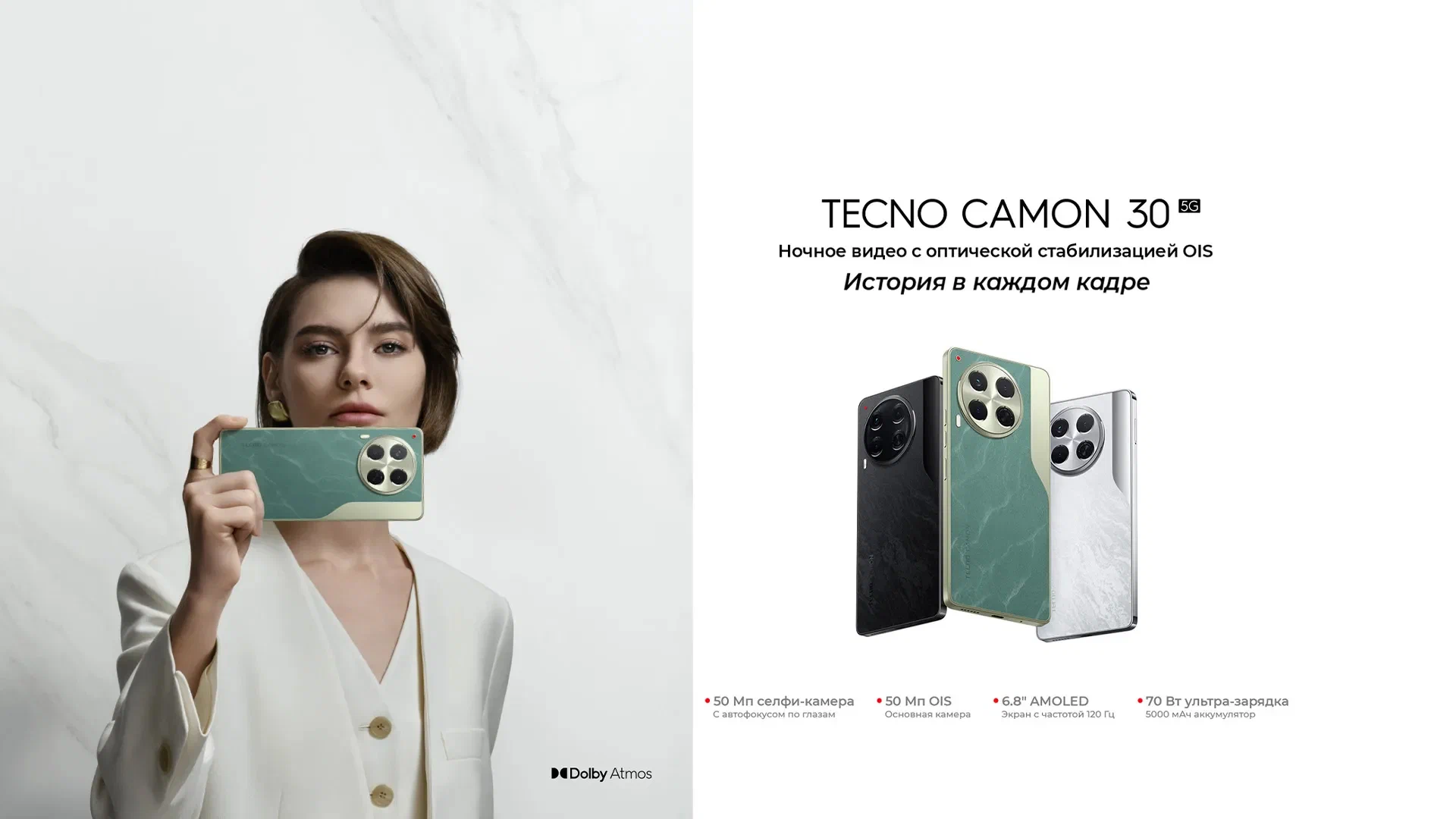 Дизайн CAMON 30 имеет две акцентные детали плавную изогнутую линию,